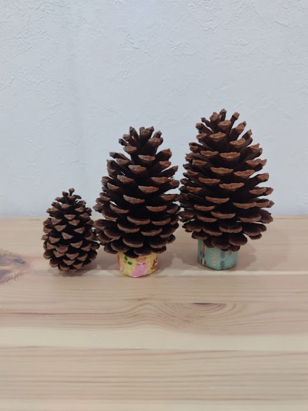 クリスマスに向けて 2024/12/10(火) おはようございます。先日知り合いの方から、10~13㎝ほどの「大きな松ぼっくり」をたくさんいただきました! 感謝です!煮沸して乾燥させるまで少し時間がかかりましたが、きれいな仕上がりになりました。本日より、通所児童全員に「大松ぼっくりツリー」を作ってもらいます!個々の想像力が楽しみです。おわり お知らせ一覧