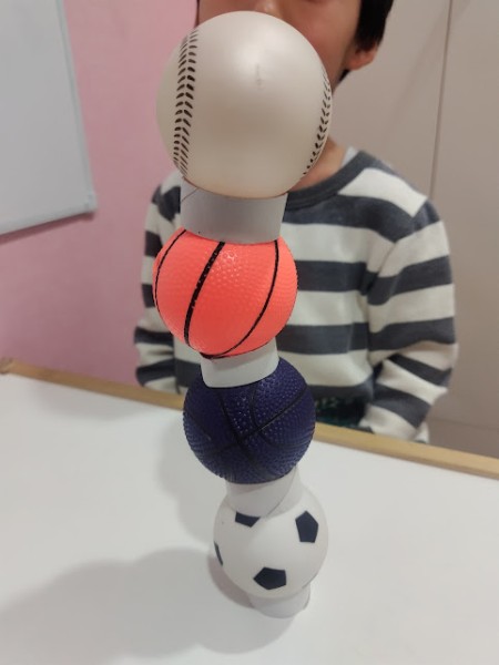るかの取り組みです。私を含め大人でもボール4個をすぐに積み上げる事