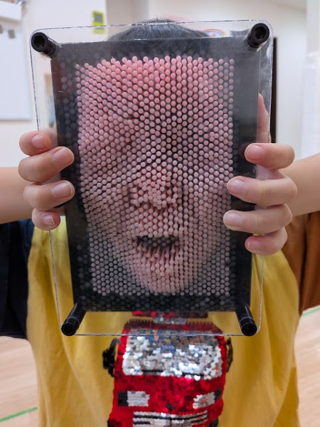 笑ってしまいました! 2025/10/04(土) こんにちは。昨日は、2人の児童が感覚グッズのピンアートで遊んでいました。交互にピンアートを顔に押し付けて、楽しんでいました!その恐ろしい顔に私も思わず笑ってしまいました!おわり お知らせ一覧